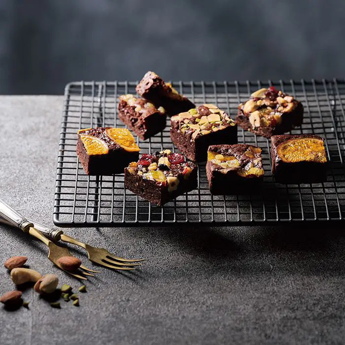 ナッツやドライフルーツをトッピングした、食べごたえ満点なブラウニーです。ふんわりとした食感に、ナッツの香ばしさやフルーツの甘い香りがたまらない、見栄えも味も贅沢なスイーツです。