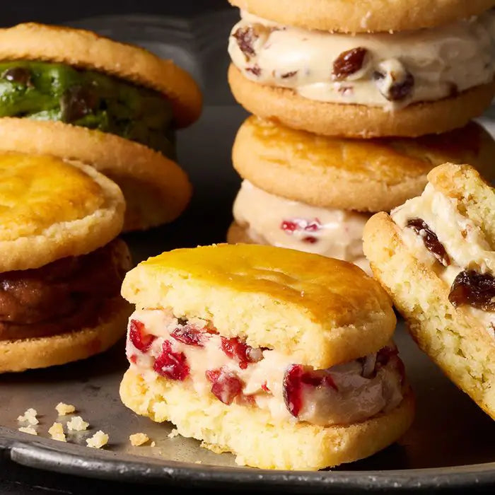 パティシエが試作を重ねて辿り着いた自慢のバターサンド酸味のあるドライフルーツたちがほどよくマッチする、発酵バターを使用した濃厚なバタークリームを、ちょっぴり塩気のあるサクサクなクッキーでサンドしました。バタークリームの濃厚さ、ドライフルーツの量や大きさ、クッキーの食感や厚み、塩気など、パティシエのこだわりを詰め込んだ自慢のレシピで作るバターサンドです。