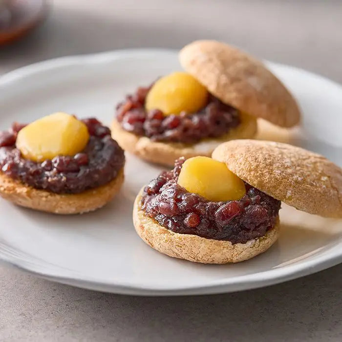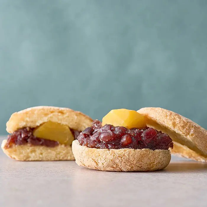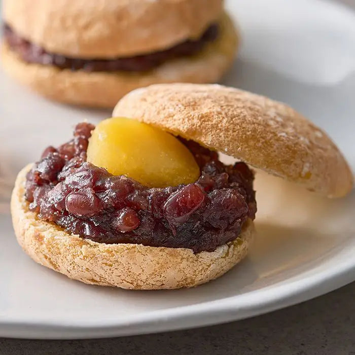 洋菓子を思わせる外観に和風の味わいの組合せ。 ふんわりも歯ごたえも実現するという贅沢を極み。さらに栗は丸ごと一粒使用で高級感を増しました。ふんわり和風ブッセでつぶあんと栗をはさみました 柔らかさと歯ごたえの両方を味わえる和菓子職人もうならせたおすすめの品です。宇治茶はもちろん、珈琲、紅茶にも良く合います!