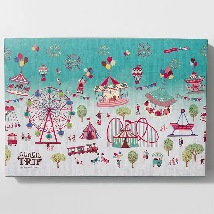 「CHOCOTRIP」雲に乗ってフワフワ移動する不思議な遊園地は、人々にとびきりのワクワクドキドキを届けます。パークのショーマンが差し出すチョコレートのお菓子をチケット代わりに、あなたを空飛ぶ不思議な遊園地へと連れて行ってくれます。そんな夢のような楽しい時間を過ごせるよう、ワクワク感たっぷりのお菓子を詰合せたブランドです。