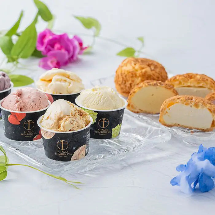 厳選した素材を使用した濃厚でなめらかなプレミアムアイスと、シュー生地にクッキー生地をのせて焼いたサクサク食感のクッキーシューにこだわりのアイスクリームを閉じ込めたプレミアムシューアイスの詰合せです。