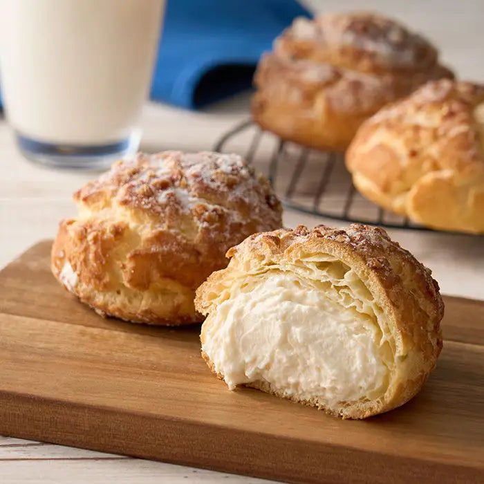 低温でじっくり殺菌したクラフトミルクと、国産の卵にラム酒を加えて、オリジナルのカスタードクリームに仕上げました。生乳のスッキリとした味わいが特徴で、上品な甘みなので、何個でもつい食べたくなる美味しさです。バターと香ばしいナッツのシュー生地が、クリームをより引き立ててくれます。