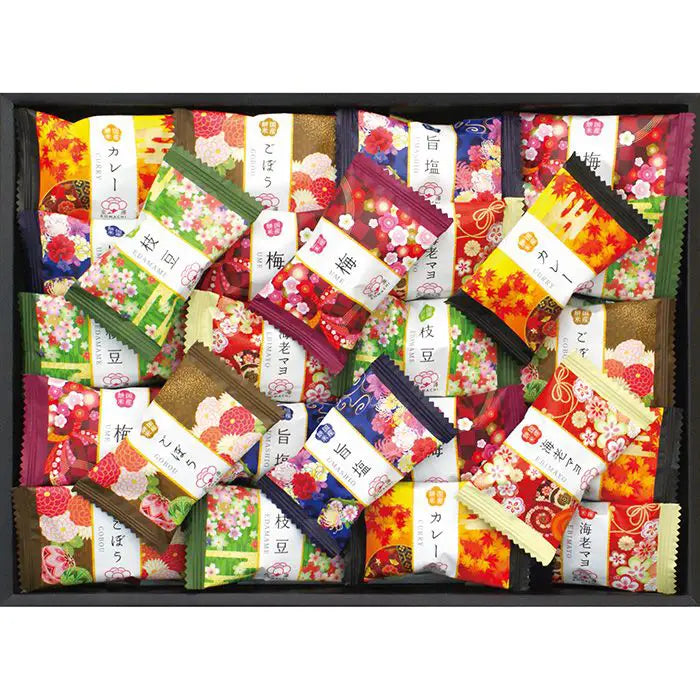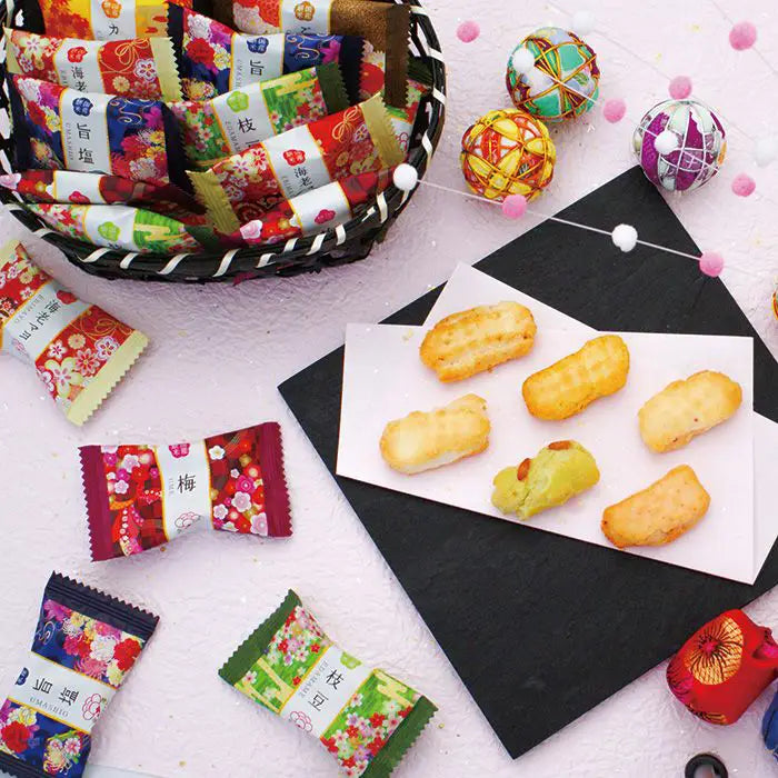 個性的な味と定番の味をベストバランスで詰合せました。缶ではなく箱にすることで廃棄の手間もなく置き場所もとりません。チャック付き袋でお手軽にいつでもおいしくいただけます。快適なライフスタイルにぴったりのおかきギフトです。