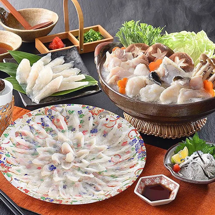 とらふぐ刺身・ちりと、まふぐしゃぶ・皮刺・ひれ酒がお楽しみいただける、ふぐフルコースセットです。鍋の後の旨みがたっぷり染み出したスープでつくる雑炊もまた格別です。
