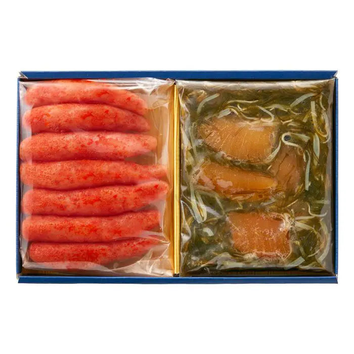 ぴりっとした辛さに、味わい深さを楽しめる博多の味「辛子明太子」と、食感の良い数の子・国産の昆布・風味のあるいかを特製醤油だれに漬込んだ「数の子松前」の詰合せです。