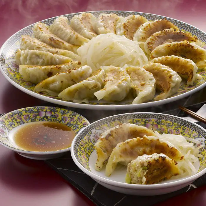 B級グルメの宝庫・静岡県より、浜松餃子が登場。屋台のフライパン焼きから考案された円形焼きで、中央のくぼみに茹でもやしを添えて食べるのがご当地流です。