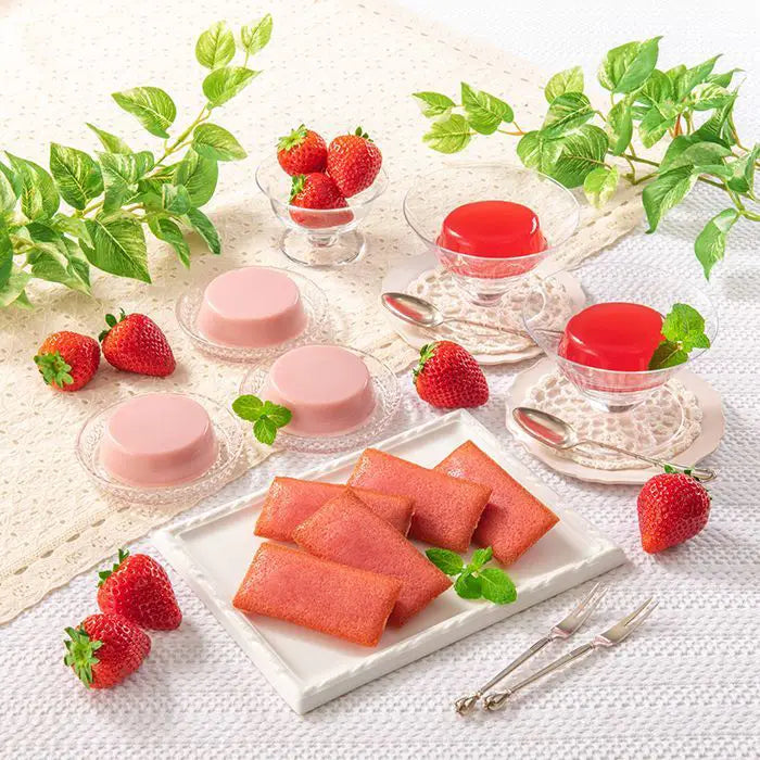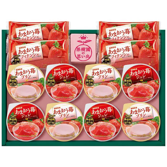 福岡県産あまおう苺を使用したフィナンシェ、プリン、ジュレのこだわりデザートセットです。