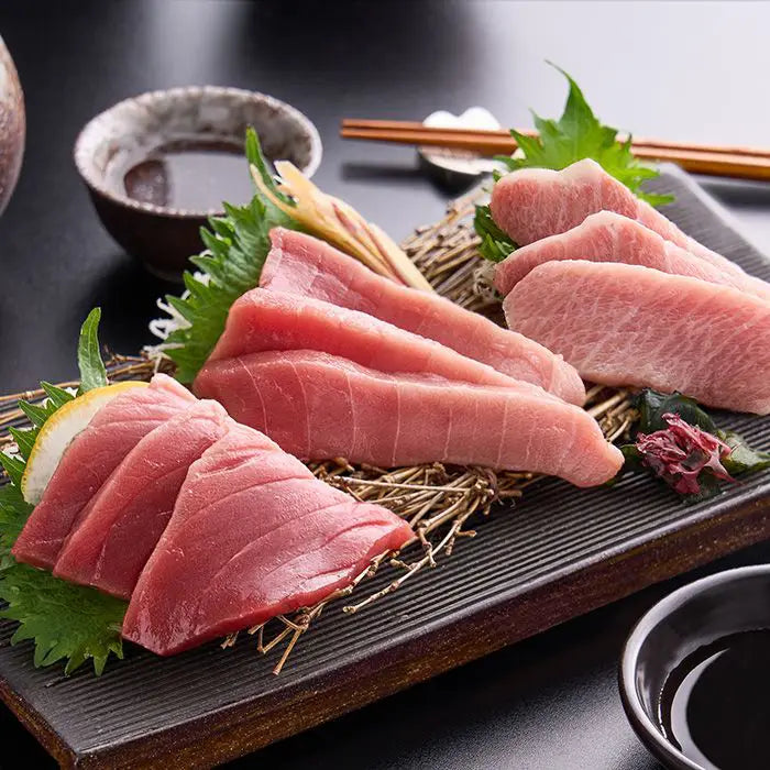 寿司ネタや刺身でおなじみのまぐろ。そんなまぐろの中でも人気の高い本まぐろの濃厚な風味を楽しめる赤身、脂の甘みと赤身の旨みのバランスが良い中トロ、濃厚なコクと甘みの大トロの柵をセットにしました。お好みの厚さに切り、醤油でお召し上がりください。