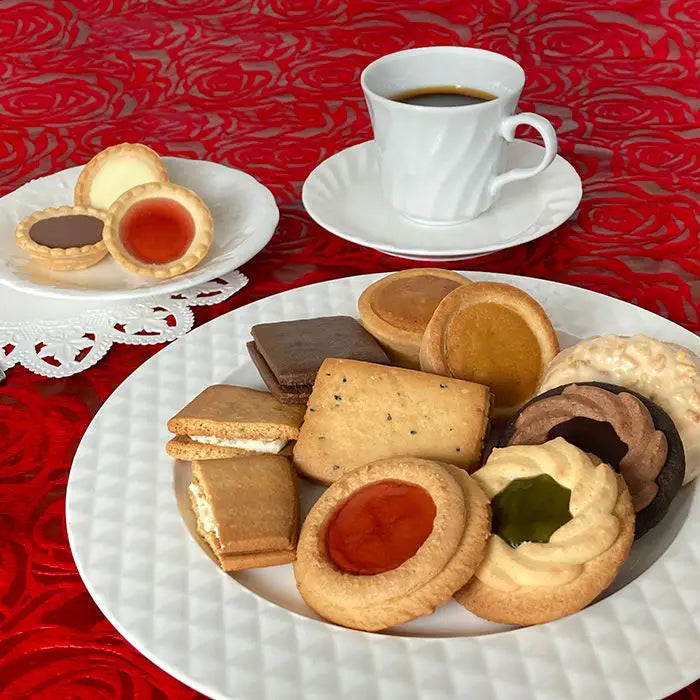 丁寧に二度焼きしてデコレーションしたクッキーに香ばしく焼き上げたサンドクッキーとプチタルトケーキの詰合せです。