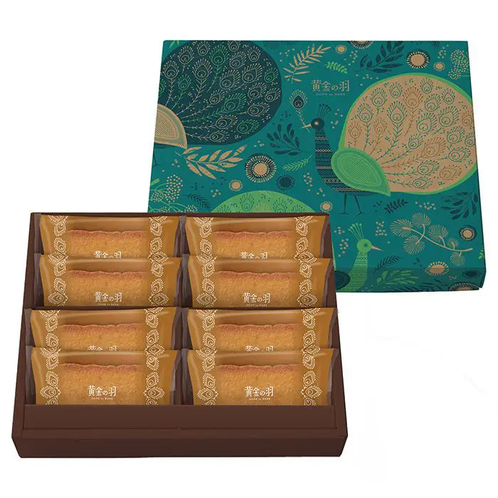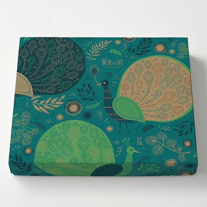 黄金の羽 -OGON no HANE-天を彩る神聖な孔雀。その羽は万の光を宿し、夜明けに虹を生み、人々の願いを天に届ける祈りの羽でした。黄金に輝くその羽は、「願いを叶え、幸福を呼ぶ」象徴とされてきました。菓子職人は、その美しさと人々の幸福を祈り、金色に焼き色を重ねたフィナンシェを焼き上げました。それが「黄金の羽」フィナンシェです。香ばしく外はサクッと中はしっとりとした口どけ。まるで光の羽が、そっと心に触れるような、穏やかな甘さをお楽しみください。